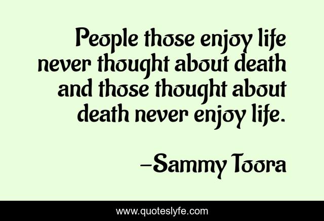 This page presents the quote "People those enjoy life never thought about death and those thought about death never enjoy life.". Author of this quote is Sammy Toora. This quote is about enjoy, life, death, reborn, celebrations, life-and-death, truth-of-life,.