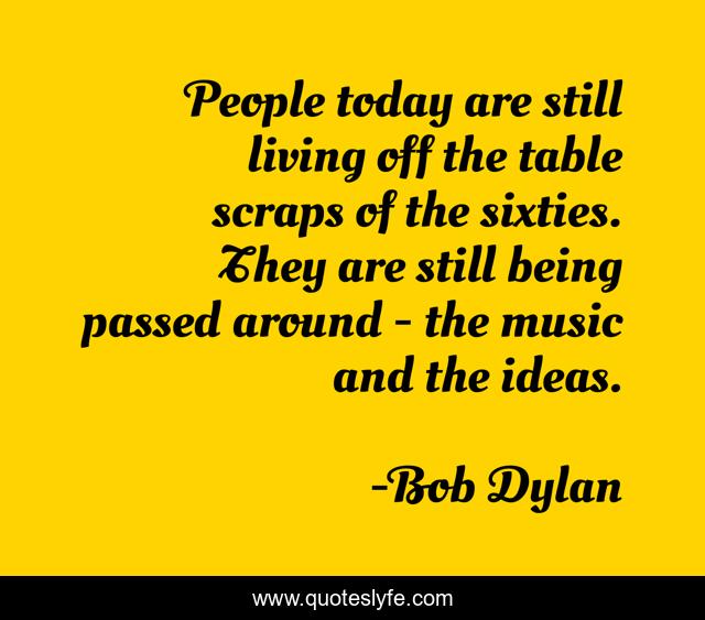 This page presents the quote "People today are still living off the table scraps of the sixties. They are still being passed around - the music and the ideas.". Author of this quote is Bob Dylan. This quote is about ideas, today, people,.