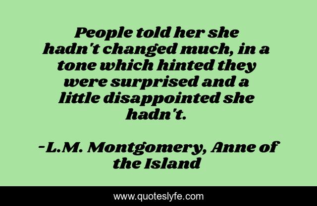 "L.M. Montgomery, Anne of the Island Quotes." Quoteslyfe.com, 2025. Sat. 06 Dec. 2025. <https://www.quoteslyfe.com/quote/People-told-her-she-hadn-t-changed-59498>.