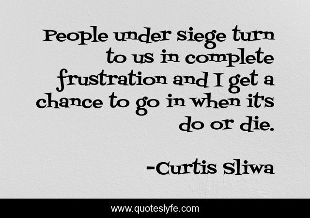 This page presents the quote "People under siege turn to us in complete frustration and I get a chance to go in when it's do or die.". Author of this quote is Curtis Sliwa. This quote is about die, frustration, people,.
