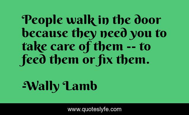 This page presents the quote "People walk in the door because they need you to take care of them -- to feed them or fix them.". Author of this quote is Wally Lamb. This quote is about compassion, devotion, service, people,.