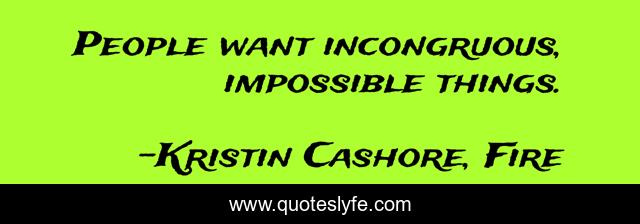 "Kristin Cashore, Fire Quotes." Quoteslyfe.com, 2025. Tue. 09 Dec. 2025. <https://www.quoteslyfe.com/quote/People-want-incongruous-impossible-things-222124>.
