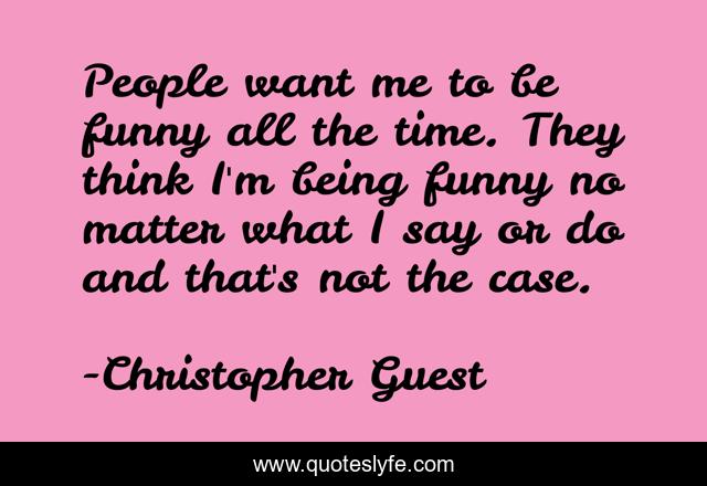 This page presents the quote "People want me to be funny all the time. They think I'm being funny no matter what I say or do and that's not the case.". Author of this quote is Christopher Guest. This quote is about me, time, people,.