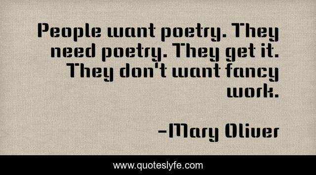 This page presents the quote "People want poetry. They need poetry. They get it. They don't want fancy work.". Author of this quote is Mary Oliver. This quote is about work, people,.