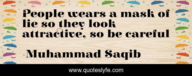 This page presents the quote "People wears a mask of lie so they look attractive, so be careful". Author of this quote is Muhammad Saqib. This quote is about careful, reality, attractive, liars, fake-people,.