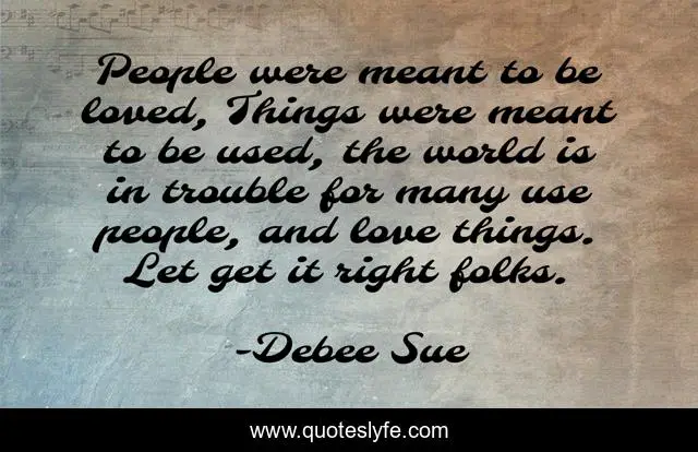 "Debee Sue Quotes." Quoteslyfe.com, 2025. Fri. 05 Dec. 2025. <https://www.quoteslyfe.com/quote/People-were-meant-to-be-loved-Things-239920>.