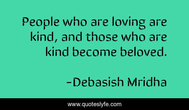 This page presents the quote "People who are loving are kind, and those who are kind become beloved.". Author of this quote is Debasish Mridha. This quote is about who-becomes-beloved, kind, inspirational, philosophy, debasish-mridha, quotes, debasish-mridha-md, beloved, enthusiasm,.