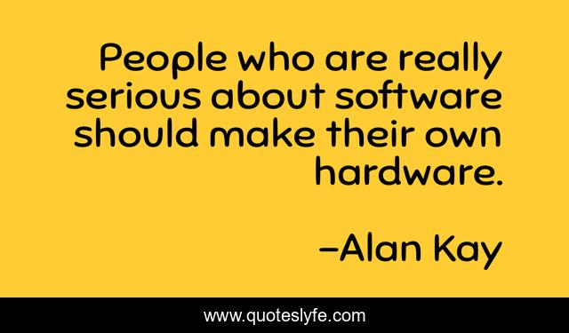 This page presents the quote "People who are really serious about software should make their own hardware.". Author of this quote is Alan Kay. This quote is about serious, people, software,.
