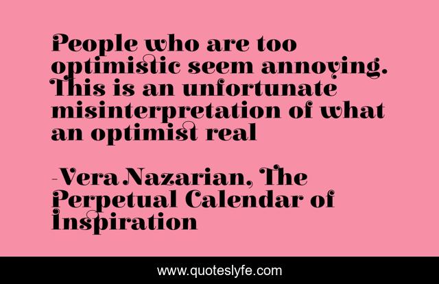 "Vera Nazarian, The Perpetual Calendar of Inspiration Quotes." Quoteslyfe.com, 2025. Mon. 15 Dec. 2025. <https://www.quoteslyfe.com/quote/People-who-are-too-optimistic-seem-annoying-174654>.