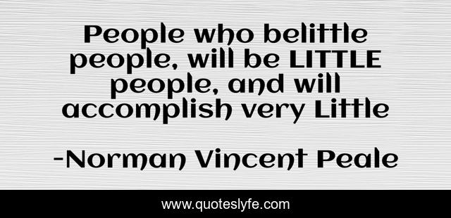 "Norman Vincent Peale Quotes." Quoteslyfe.com, 2025. Sun. 07 Dec. 2025. <https://www.quoteslyfe.com/quote/People-who-belittle-people-will-be-LITTLE-9735>.