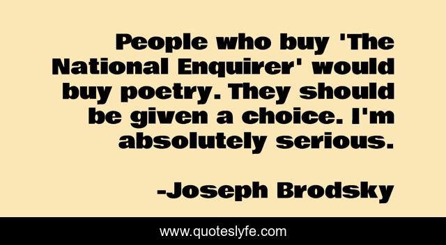 This page presents the quote "People who buy 'The National Enquirer' would buy poetry. They should be given a choice. I'm absolutely serious.". Author of this quote is Joseph Brodsky. This quote is about serious, choice, people,.