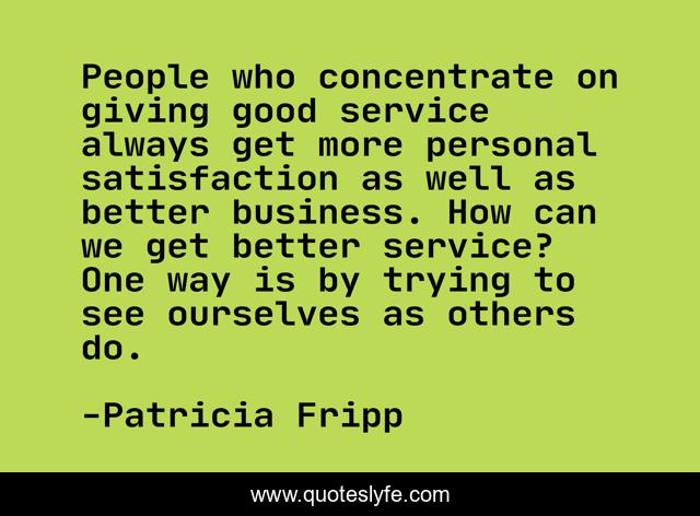 This page presents the quote "People who concentrate on giving good service always get more personal satisfaction as well as better business. How can we get better service? One way is by trying to see ourselves as others do.". Author of this quote is Patricia Fripp. This quote is about self, knowledge,.