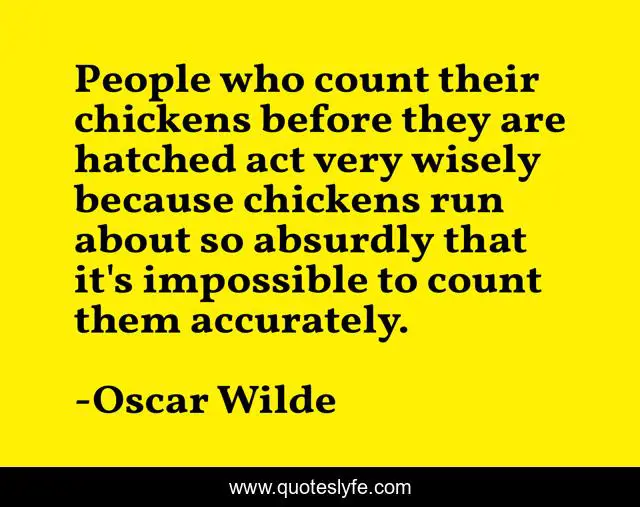 "Oscar Wilde Quotes." Quoteslyfe.com, 2025. Fri. 05 Dec. 2025. <https://www.quoteslyfe.com/quote/People-who-count-their-chickens-before-they-55276>.