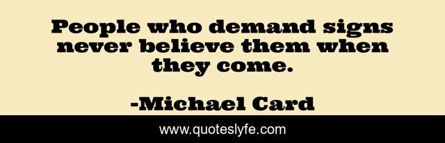 "Michael Card Quotes." Quoteslyfe.com, 2025. Mon. 08 Dec. 2025. <https://www.quoteslyfe.com/quote/People-who-demand-signs-never-believe-them-30112>.