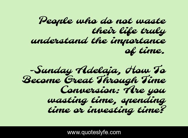"Sunday Adelaja, How To Become Great Through Time Conversion: Are you wasting time, spending time or investing time? Quotes." Quoteslyfe.com, 2025. Tue. 09 Dec. 2025. <https://www.quoteslyfe.com/quote/People-who-do-not-waste-their-life-38903>.
