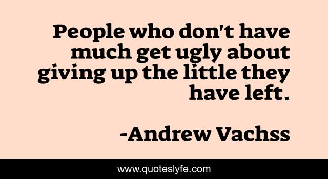 This page presents the quote "People who don't have much get ugly about giving up the little they have left.". Author of this quote is Andrew Vachss. This quote is about violence, poverty,.