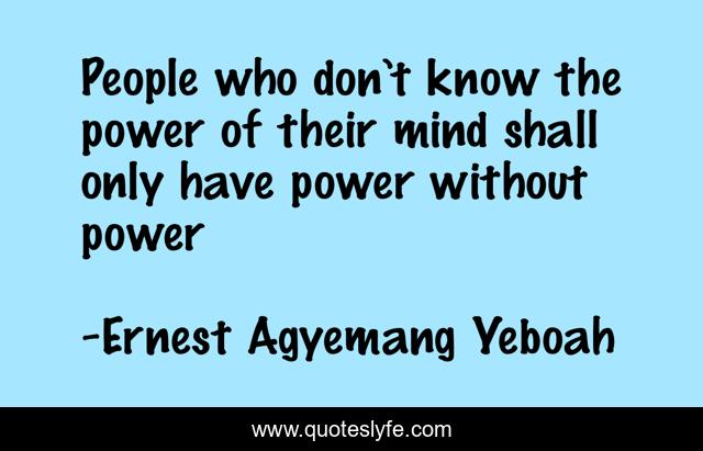 This page presents the quote "People who don’t know the power of their mind shall only have power without power". Author of this quote is Ernest Agyemang Yeboah. This quote is about knowlwedge, know-your-worth, power-without-power, power-within, inspirational, enthusiasm, mind-power, wisdom, personal-value,.