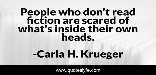 This page presents the quote "People who don't read fiction are scared of what's inside their own heads.". Author of this quote is Carla H. Krueger. This quote is about reading-motivation, reading-books, writers, books, reading-for-life, reading, books-reading, carla-h-krueger, reading-habits,.