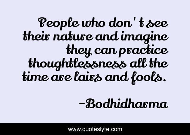 This page presents the quote "People who don't see their nature and imagine they can practice thoughtlessness all the time are lairs and fools.". Author of this quote is Bodhidharma. This quote is about people, nature, time,.