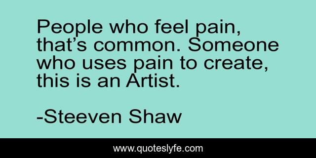 This page presents the quote "People who feel pain, that’s common. Someone who uses pain to create, this is an Artist.". Author of this quote is Steeven Shaw. This quote is about creativity, artist, pain, people,.