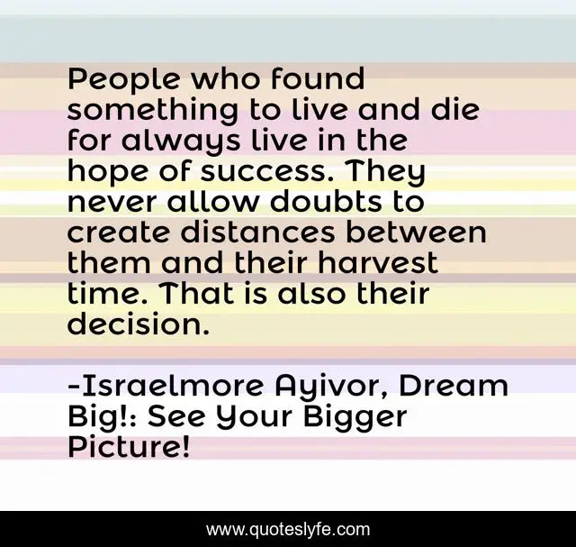 "Israelmore Ayivor, Dream Big!: See Your Bigger Picture! Quotes." Quoteslyfe.com, 2025. Mon. 08 Dec. 2025. <https://www.quoteslyfe.com/quote/People-who-found-something-to-live-and-32371>.