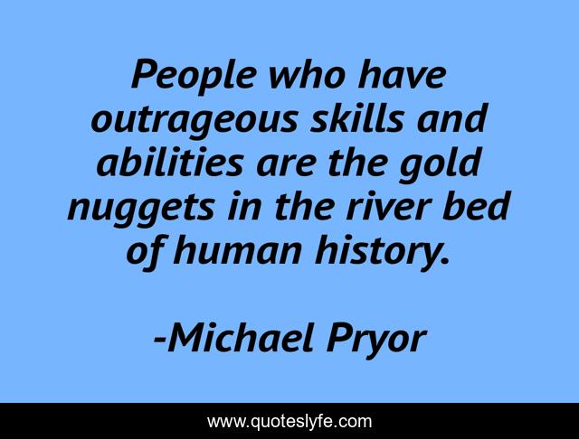 This page presents the quote "People who have outrageous skills and abilities are the gold nuggets in the river bed of human history.". Author of this quote is Michael Pryor. This quote is about humans, history,.