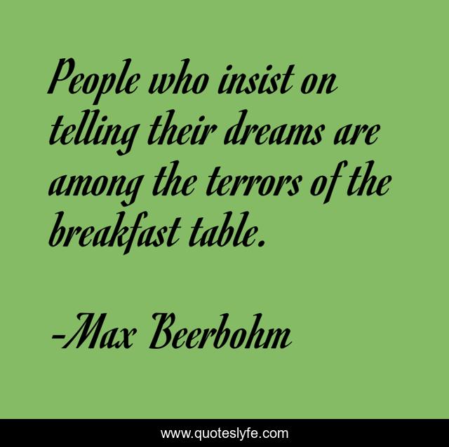 This page presents the quote "People who insist on telling their dreams are among the terrors of the breakfast table.". Author of this quote is Max Beerbohm. This quote is about table, breakfast, people,.
