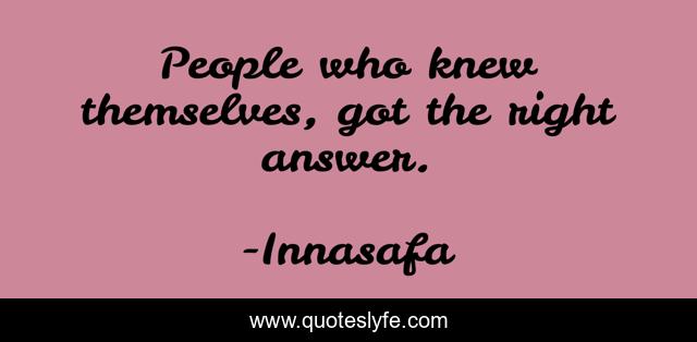 This page presents the quote "People who knew themselves, got the right answer.". Author of this quote is Innasafa. .