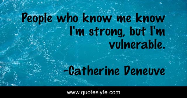 This page presents the quote "People who know me know I'm strong, but I'm vulnerable.". Author of this quote is Catherine Deneuve. .