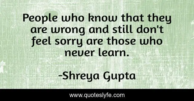 This page presents the quote "People who know that they are wrong and still don't feel sorry are those who never learn.". Author of this quote is Shreya Gupta. This quote is about sorry, learn,.