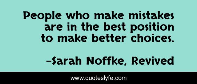 This page presents the quote "People who make mistakes are in the best position to make better choices.". Author of this quote is Sarah Noffke, Revived. This quote is about choices-and-consequences, choices,.