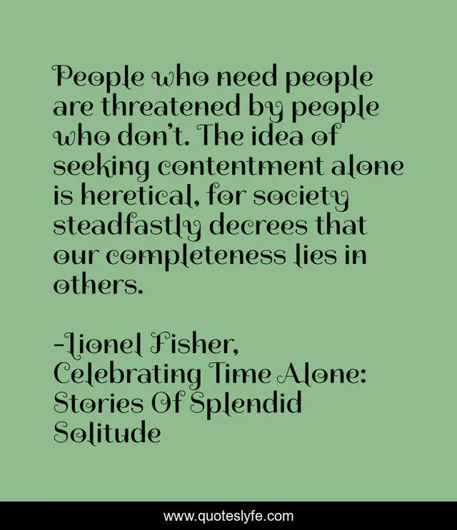"Lionel Fisher, Celebrating Time Alone: Stories Of Splendid Solitude Quotes." Quoteslyfe.com, 2025. Sat. 06 Dec. 2025. <https://www.quoteslyfe.com/quote/People-who-need-people-are-threatened-by-192834>.