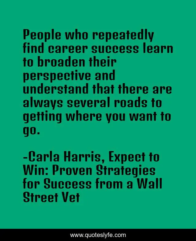 This page presents the quote "People who repeatedly find career success learn to broaden their perspective and understand that there are always several roads to getting where you want to go.". Author of this quote is Carla Harris, Expect to Win: Proven Strategies for Success from a Wall Street Vet. This quote is about leadership, career-development,.