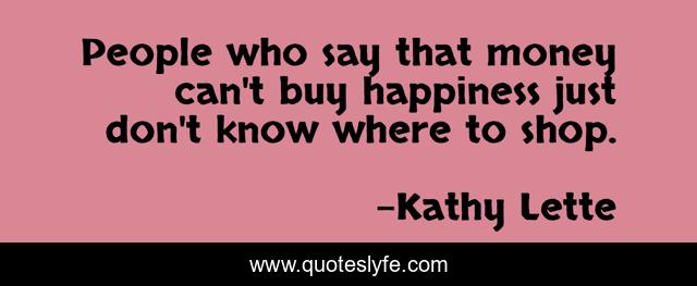 This page presents the quote "People who say that money can't buy happiness just don't know where to shop.". Author of this quote is Kathy Lette. This quote is about shop, money, kathy-lette, happiness, nip-tuck,.