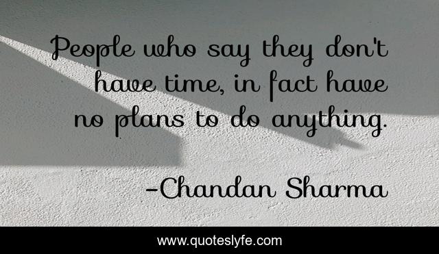 This page presents the quote "People who say they don't have time, in fact have no plans to do anything.". Author of this quote is Chandan Sharma. This quote is about daily-life, quotes, life, life-and-living, time,.