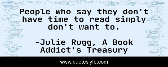 This page presents the quote "People who say they don't have time to read simply don't want to.". Author of this quote is Julie Rugg, A Book Addict's Treasury. This quote is about reading-books, reading,.