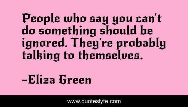 This page presents the quote "People who say you can't do something should be ignored. They're probably talking to themselves.". Author of this quote is Eliza Green. This quote is about enthusiasm, humour, lessons-in-life, inspirational, life-lessons,.