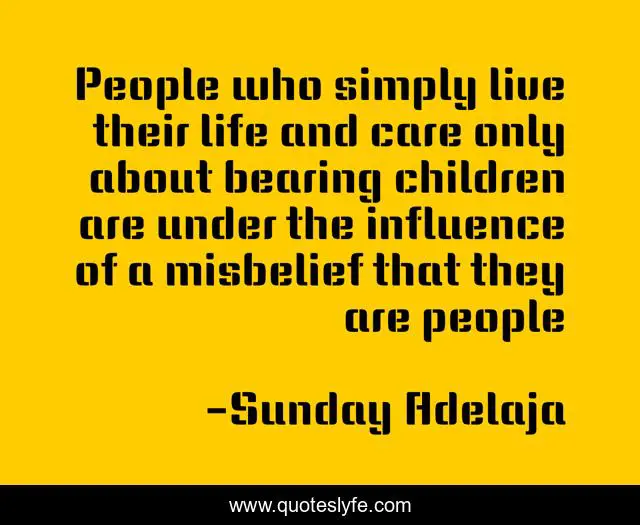 This page presents the quote "People who simply live their life and care only about bearing children are under the influence of a misbelief that they are people". Author of this quote is Sunday Adelaja. This quote is about living, life, misbelief, family, people, influence, marriage, children, care,.