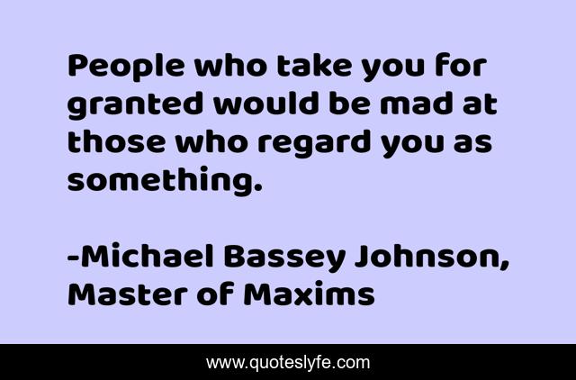 "Michael Bassey Johnson, Master of Maxims Quotes." Quoteslyfe.com, 2025. Mon. 08 Dec. 2025. <https://www.quoteslyfe.com/quote/People-who-take-you-for-granted-would-163458>.