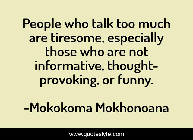 "Mokokoma Mokhonoana Quotes." Quoteslyfe.com, 2025. Tue. 09 Dec. 2025. <https://www.quoteslyfe.com/quote/People-who-talk-too-much-are-tiresome-242925>.