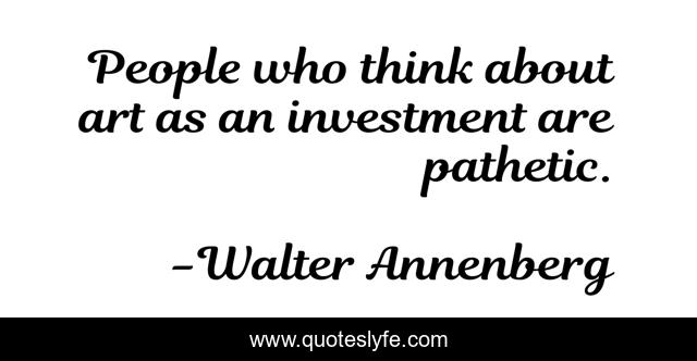 This page presents the quote "People who think about art as an investment are pathetic.". Author of this quote is Walter Annenberg. This quote is about art, think, people,.