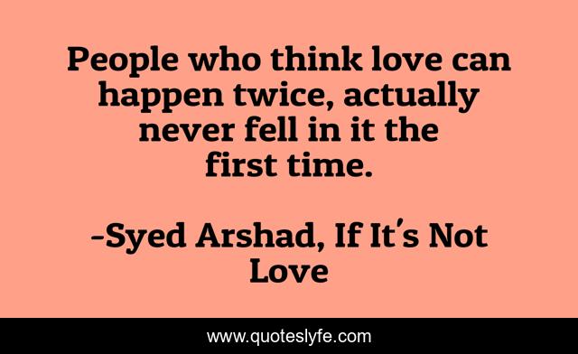 This page presents the quote "People who think love can happen twice, actually never fell in it the first time.". Author of this quote is Syed Arshad, If It's Not Love. This quote is about love, affection,.