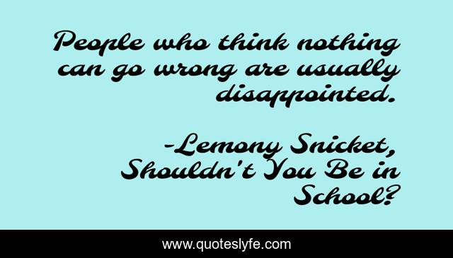 This page presents the quote "People who think nothing can go wrong are usually disappointed.". Author of this quote is Lemony Snicket, Shouldn't You Be in School?. .