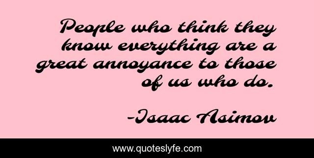 "Isaac Asimov Quotes." Quoteslyfe.com, 2025. Sun. 07 Dec. 2025. <https://www.quoteslyfe.com/quote/People-who-think-they-know-everything-are-310879>.