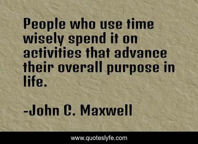 This page presents the quote "People who use time wisely spend it on activities that advance their overall purpose in life.". Author of this quote is John C. Maxwell. This quote is about life, purpose, people,.