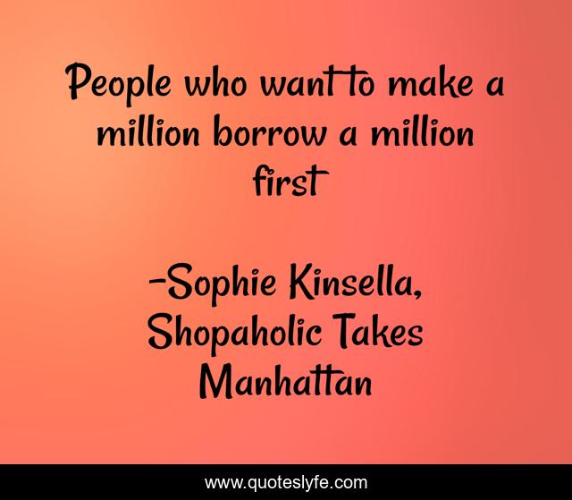 This page presents the quote "People who want to make a million borrow a million first". Author of this quote is Sophie Kinsella, Shopaholic Takes Manhattan. This quote is about money, kinsella, shopaholic, manhattan,.