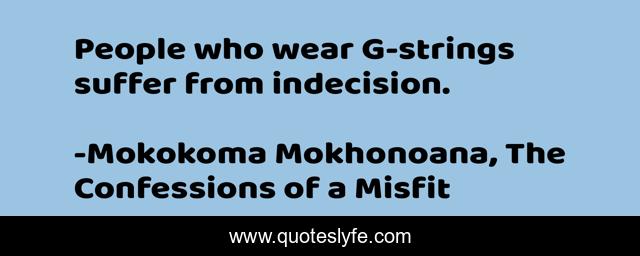 "Mokokoma Mokhonoana, The Confessions of a Misfit Quotes." Quoteslyfe.com, 2025. Sun. 07 Dec. 2025. <https://www.quoteslyfe.com/quote/People-who-wear-G-strings-suffer-from-255413>.