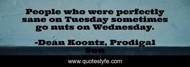 "Dean Koontz, Prodigal Son Quotes." Quoteslyfe.com, 2025. Mon. 08 Dec. 2025. <https://www.quoteslyfe.com/quote/People-who-were-perfectly-sane-on-Tuesday-232705>.