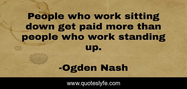 This page presents the quote "People who work sitting down get paid more than people who work standing up.". Author of this quote is Ogden Nash. .