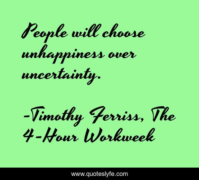 "Timothy Ferriss, The 4-Hour Workweek Quotes." Quoteslyfe.com, 2025. Tue. 09 Dec. 2025. <https://www.quoteslyfe.com/quote/People-will-choose-unhappiness-over-uncertainty-140579>.